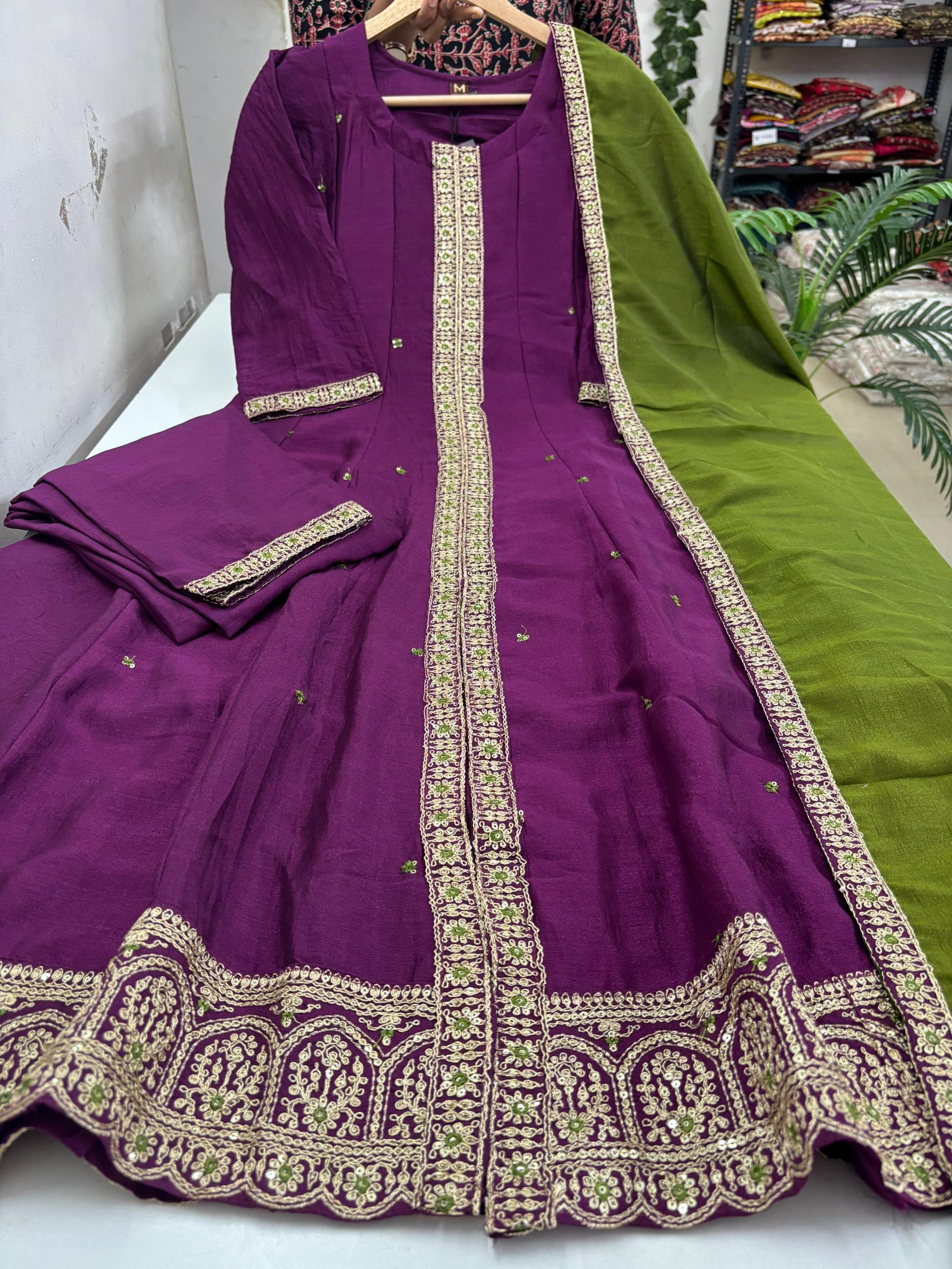Vichitra Silk Anarkali With Pant & Dupatta Set
