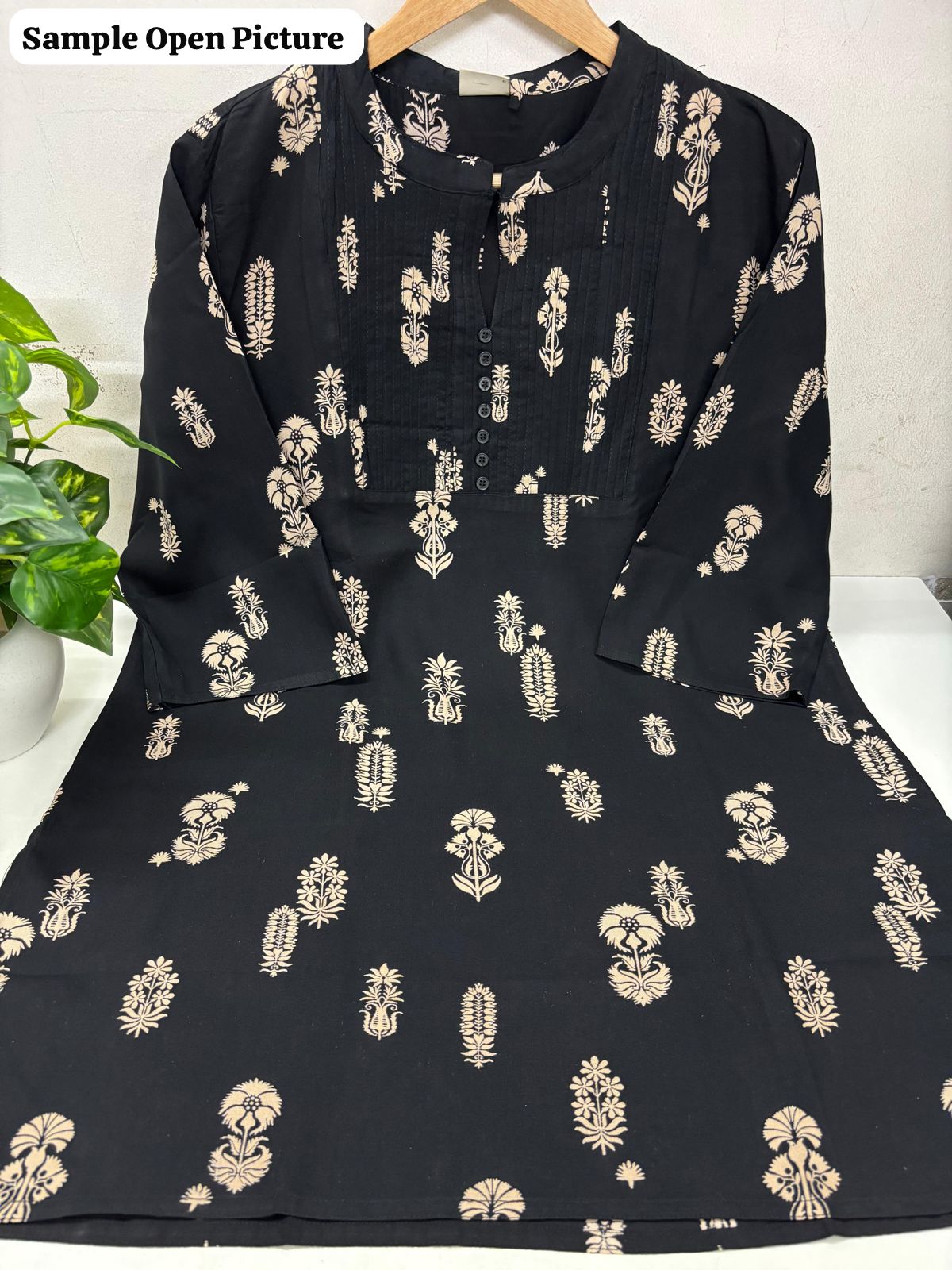 Ethnic Short Kurti for daily and office Wear Fabric: Cotton Rayon Blend Model : Side Slit Length: 32 inches