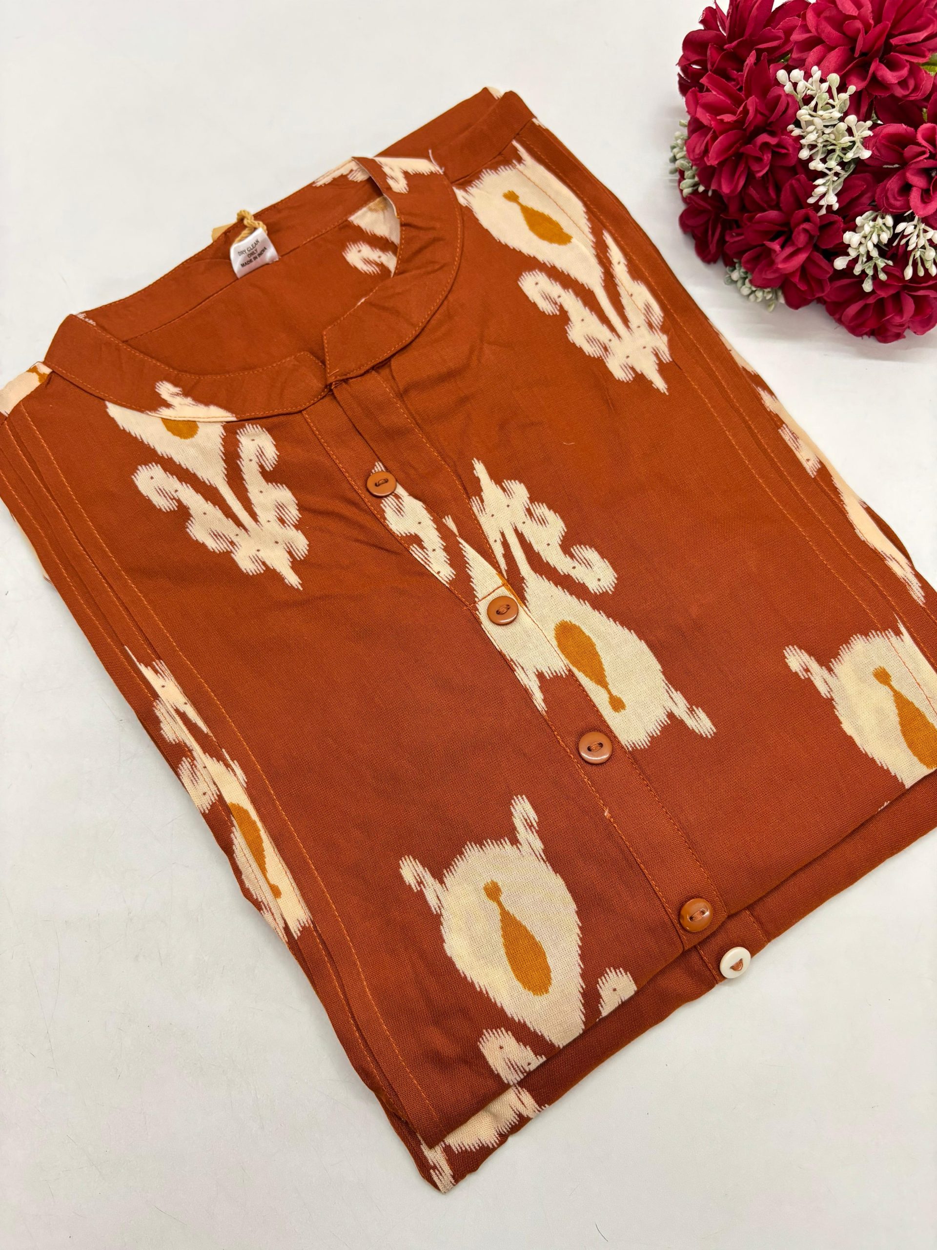 Ethnic Short Kurti for daily and office Wear Fabric: Cotton Rayon Blend Model : Side Slit Length: 32 inches