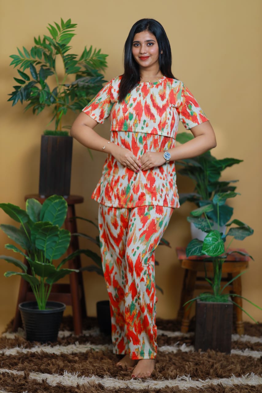 Women’s knitted Cotton Zipless Feeding Night Suit Set of T-shirt & Pyjama with side Pocket Fabric: knitted cotton