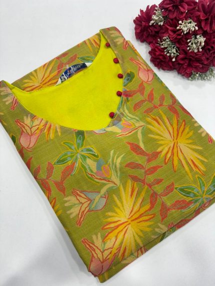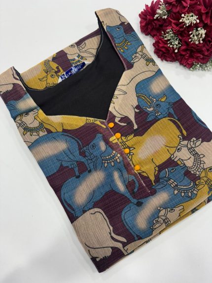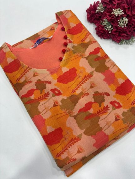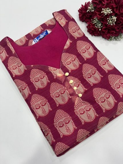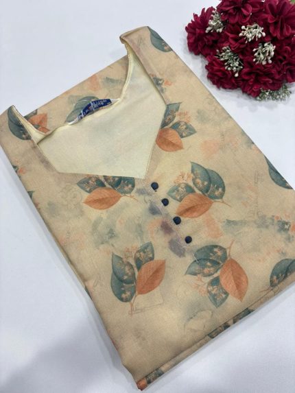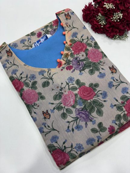 Premium Digital Printed Tissue Silk Side Open Kurti Fabric: Tissue Silk With Lining Length: 41 inches Sleeves: 3/4th sleeves