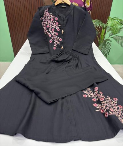 Georgette A Line Frock With Crepe Lining Intricate handwork beautifully crafted on the yoke Portion Length : 45 to 46
