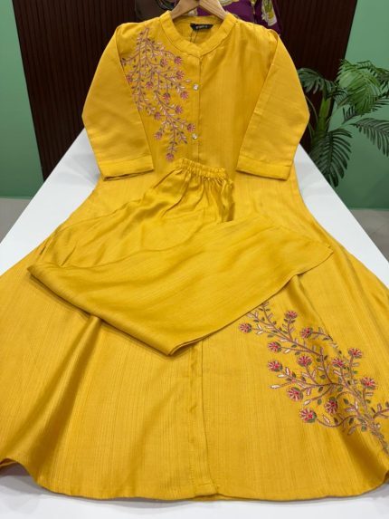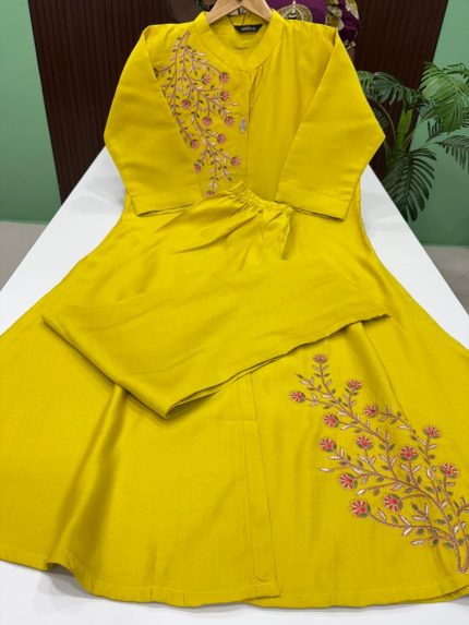 Semi Raw Silk A Line Kurti With Side Pocket Kurti Length : 44 inches SIZE CHART M – 36 INCHES